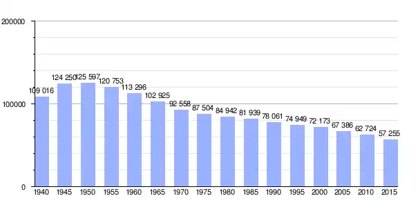| Gráfica de evolución demográfica de Sado entre 1940 y 2015 |