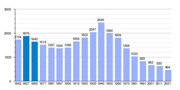 | Gráfica de evolución demográfica de Saelices[3] entre 1842 y 2021 |