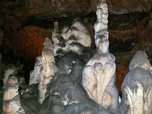 También es única por sus colores - verde, marrón y blanco. Se encuentran estalactitas, estalagmitas, estalactones, helictitas y dendritas.