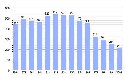 | Gráfica de evolución demográfica de Sagama entre 1861 y 2001 |
