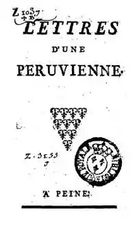 - Françoise de Graffigny, escritora francesa: Lettres d'une péruvienne. O en español "Cartas de una peruana", prohibida en 1765. Novela epistolar que narra las desventuras de una princesa inca, secuestrada por los españoles durante la Conquista.