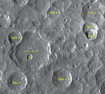 Por convención estos elementos se identifican en los mapas lunares colocando la letra en el lado del punto central del cráter más cercano a Saha.