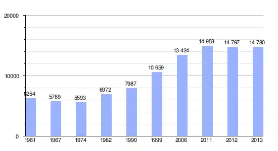| Gráfica de evolución demográfica de Saint-François (Guadalupe) entre 1961 y 2013 |