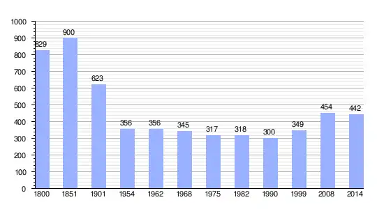 | Gráfica de evolución demográfica de Saint-Géry entre 1800 y 2014 |