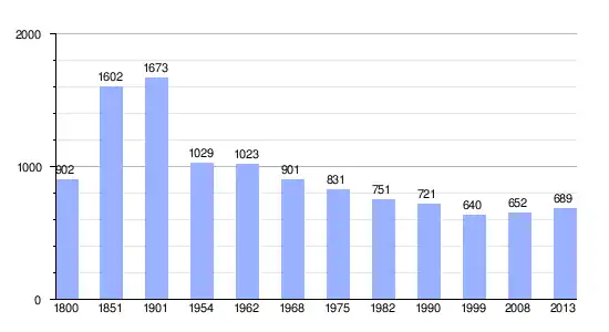| Gráfica de evolución demográfica de Saint-Gouéno entre 1800 y 2013 |