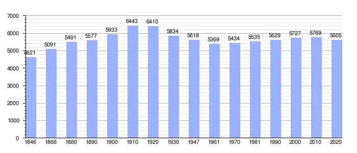 Todos los datos históricos relativos al actual municipio, el siguiente gráfico refleja su evolución demográfica, incluyendo municipios después de efectuada la fusión el 1 de enero de 1977.