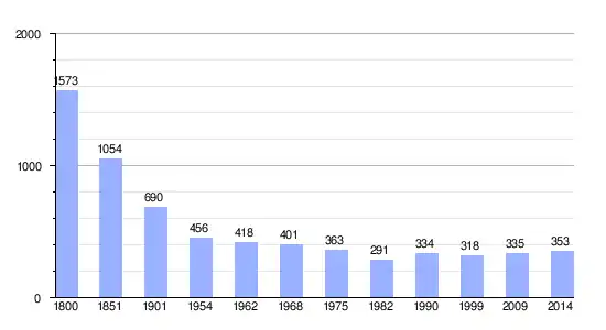 Los datos demográficos contemplados en este gráfico de la comuna de Saint-Jean-le-Blanc[4] se han cogido de 1800 a 1999 de la página francesa EHESS/Cassini, y los demás datos de la página del INSEE.[5]