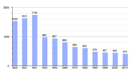 | Gráfica de evolución demográfica de Saint-Privat-d'Allier entre 1800 y 2014 |