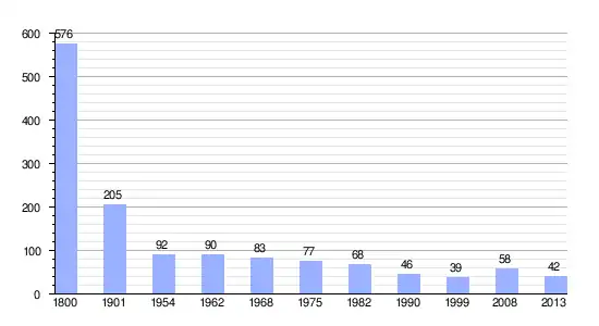 Los datos demográficos contemplados en este gráfico de la comuna de Saint-Sauveur-la-Vallée[4] se han cogido de 1800 a 1999 de la página francesa EHESS/Cassini, y los demás datos de la página del INSEE.[5]