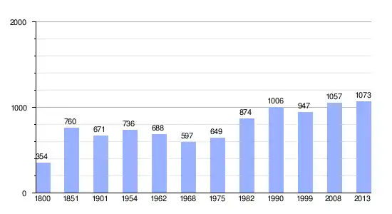 | Gráfica de evolución demográfica de Saint-Sauveur entre 1800 y 2013 |