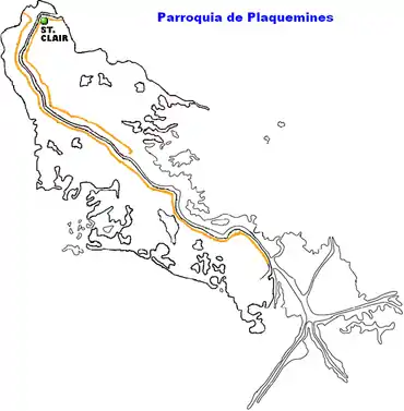 Localización de Saint Clair en el mapa de la Parroquia de Plaquemines.