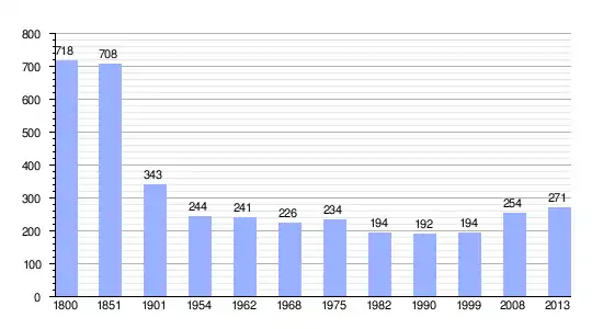 Los datos demográficos contemplados en este gráfico de la comuna de Sainte-Croix-sur-Aizier[4] se han cogido de 1800 a 1999 de la página francesa EHESS/Cassini, y los demás datos de la página del INSEE.[5]