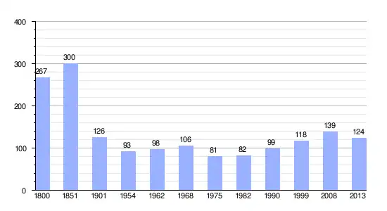 Los datos demográficos contemplados en este gráfico de la comuna de Sainte-Marguerite-en-Ouche[4] se han cogido de 1800 a 1999 de la página francesa EHESS/Cassini, y los demás datos de la página del INSEE.[5]