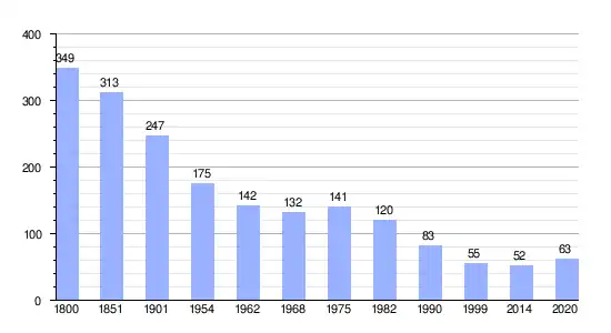 Los datos demográficos contemplados en este gráfico de la comuna de Sainte-Marie-du-Bois[5] se han cogido de 1800 a 1999 de la página francesa EHESS/Cassini, y los demás datos de la página del INSEE.[6]