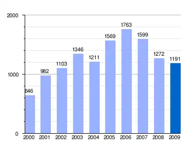 | Gráfica de evolución demográfica de Saladar y Leche entre 2000 y 2009 |
