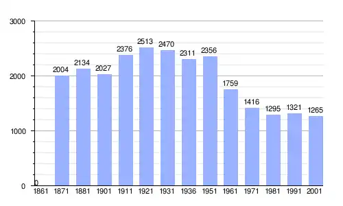 | Gráfica de evolución demográfica de Salara entre 1861 y 2001 |