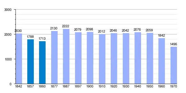 | Gráfica de evolución demográfica de Los Barrios de Salas[1] entre 1842 y 1970 |
