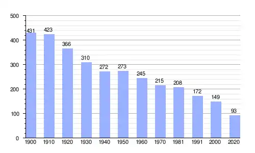 | Gráfica de evolución demográfica de Salce entre 1900 y 2020 |
