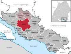 Está ubicado al sureste del estado, en la región de Tubinga, cerca de la orilla del lago de Constanza, que lo separa de Suiza y Austria.