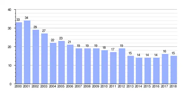 | Gráfica de evolución demográfica de Salgueiro entre 2000 y 2018 |
