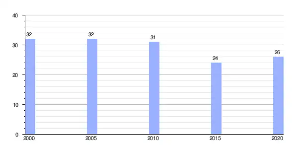 | Gráfica de evolución demográfica de Salgueiros entre 2000 y 2020 |