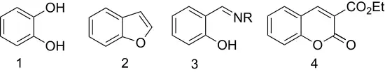 - La eterificación con ácido cloroacético seguida de ciclación da el heterociclo benzofurano (cumarona).[9] El primer paso en esta reacción al benzofurano sustituido se denomina condensación Rap-Stoermer, por E. Rap (1895) y R. Stoermer (1900).[10][11]
