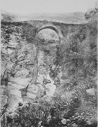 El puente consistía en un solo arco de medio punto de piedra con dieciséis metros de luz, una altura de casi cincuenta metros sobre el río y la anchura de un camino carretero. Fue una obra muy notable que causaba la admiración de todos los viajeros.