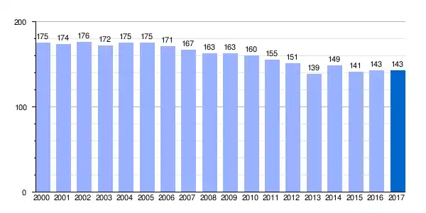| Gráfica de evolución demográfica de Salinas de Añana[2] entre 2000 y 2017 |