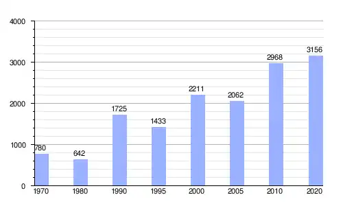 Gráfica de evolución demográfica de Saloya 1.ª Sección entre 1970 y 2020