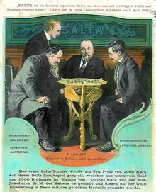 Salta se comercializó de forma inteligente, organizando torneos con importantes premios en efectivo (como el de Mónaco, con alrededor de 20.000 francos suizos en premios) y consiguiendo que grandes maestros del ajedrez escribieran artículos destacados sobre el juego tanto en Gartenlaube como en el New Yorker Staats-Zeitung. Meyers Conversationslexikon dedicó una página completa al juego, y se publicaron varios libros de texto y una "Deutsche Saltazeitung" (Revista Alemana sobre Salta) separada. Había disponibles versiones económicas del juego por 2,50 marcos,[1] así como versiones de lujo por más de 400 marcos.
