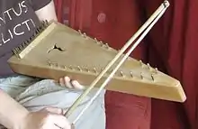 El último tipo de salterio es el salterio de arco, menos común que los anteriores, y se extrae el sonido frotando el arco contra las cuerdas.
