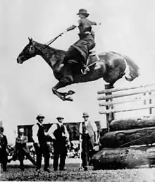 En 1902 se realizó en Turín el Concurso Ecuestre Internacional, en el que participaron 147 jinetes de seis países. En el salto alto mixto, el vencedor fue el capitán italiano Federico Caprilli, quien estableció un récord mundial de 2,08 m (6 ft 9⅞ in) con su caballo «Meloppo». Además, Caprilli, considerado el introductor de la equitación moderna con las técnicas de armonización del jinete al movimiento natural del caballo, aportó la innovación en la postura elemental del jinete o amazona de inclinación hacia adelante al tiempo del salto del caballo, lo que hizo que se pudieran superar obstáculos cada vez de mayor altura. Así, el salto de Federico Caprilli hizo que estallara un gran entusiasmo por esta disciplina en otros lugares del mundo, como por ejemplo en Estados Unidos, donde se comenzó a entrenar caballos especialmente para el salto alto, aumentando cada vez más su popularidad entre el público norteamericano.
