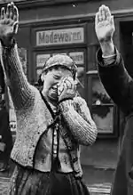 Tras la Segunda Guerra Mundial, el saludo romano quedó fuertemente asociado con las ideas del fascismo, nazismo y franquismo, por lo cual su utilización fue rechazada en casi todo el mundo, inclusive en países que lo habían adoptado por mantener relaciones amistosas con el Eje, como España, donde el régimen de Francisco Franco dejó de emplear oficialmente el saludo romano poco después de 1945.[2] No obstante, los falangistas lo han seguido utilizando hasta el siglo XXI.[3]
