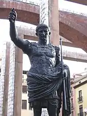 En la Columna de Trajano, en Roma, aparecen diversos ejemplos que han sido aducidos como testimonios del «saludo romano», en relieves donde se muestra legionarios saludando al emperador, así como en las estatuas de algunos emperadores como Augusto, o en la estatua ecuestre de Marco Aurelio. También existe un relieve del siglo II d. C. hallado cerca de Éfeso donde aparece este saludo en la ilustración de los funerales de un oficial militar, siendo posible ver a manera de saludo brazos extendidos adelante, con la palma de la mano abierta y hacia el suelo, en un ángulo de 45 grados. En todos los casos resulta incierto que tal gesto existiese como una forma habitual.
