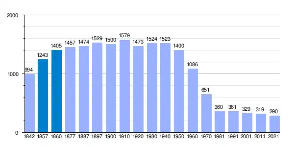 Gráfica de evolución demográfica de Salvacañete[1] entre 1842 y 2021