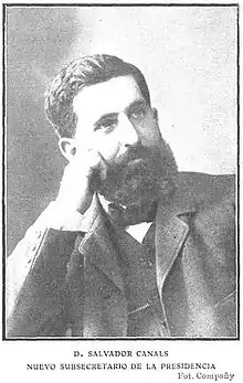 ![]() Salvador Canals, en la revista Actualidades (fotografía de Manuel Compañy, 1908) | ||
