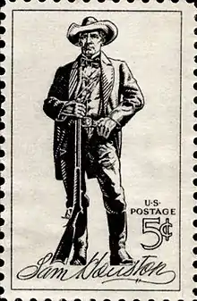 Samuel Houston (2 de marzo de 1793-26 de julio de 1863) fue un estadista, político y soldado estadounidense. Aunque nacido en Virginia, desempeñó un papel clave en la independencia de Texas: se desempeñó como primer y tercer presidente de la República de Texas y fue una de las dos primeras personas en representar a Texas en el Senado de los Estados Unidos. También se desempeñó como sexto gobernador de Tennessee y séptimo gobernador de Texas, el único individuo elegido gobernador de dos estados diferentes de los Estados Unidos.