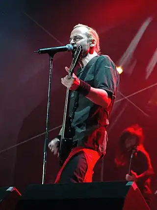 ![]() Samael en concierto en Hunter Fest 2007. De izquierda a derecha: Vorph y Makro. | ||