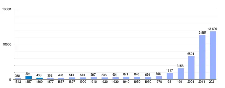 En 1917 la población sobrepasaba los 500 habitantes. Según los datos del censo de 1986, la población era entonces de 2459 habitantes; en 2008 cuenta con 10 433 vecinos. Este aumento demográfico, apenas alcanzado por tanto en la última década, ha hecho que la estructura del pueblo haya pasado de casas de pueblo de uno o dos patios, generalmente con corral, a algunos bloques de pisos y principalmente urbanizaciones de chalets adosados.