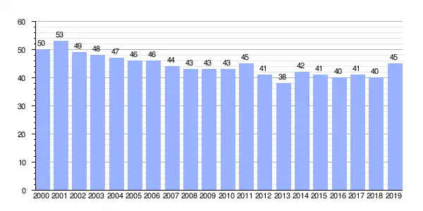Gráfica de evolución demográfica de Trobe (parroquia) entre 2000 y 2019