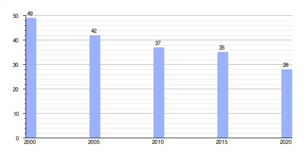 | Gráfica de evolución demográfica de San Andrés de la Ribera entre 2000 y 2020 |