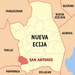 San Antonio (Bayan ng San Antonio - Municipality of San Antonio), antes conocido como Barrio Delinquente, es un municipio filipino de primera categoría, situado en la parte central de la isla de Luzón. Forma parte del Cuarto Distrito Electoral de la provincia de Nueva Écija situada en la Región Administrativa de Luzón Central, también denominada Región III.