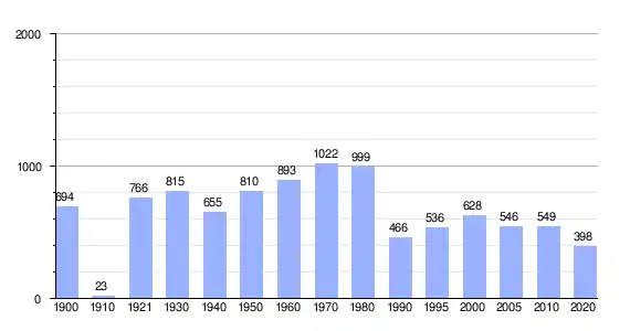 En 2020 registró una población de 398 personas, lo que corresponde al 2.08 % de la población municipal.[13] De los cuales 197 son hombres y 201 son mujeres.[13] Tiene 152 viviendas particulares habitadas.[13]