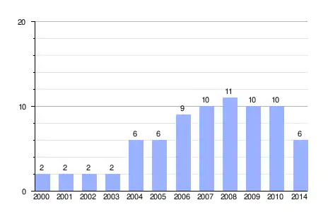 | Gráfica de evolución demográfica de San Bartolomé entre 2000 y 2014 |