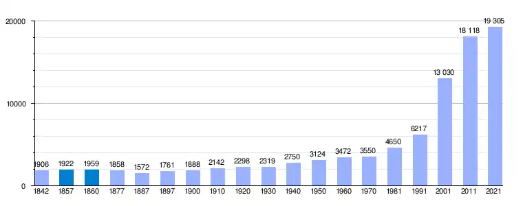 | Gráfica de evolución demográfica de San Bartolomé[4] entre 1842 y 2021 |