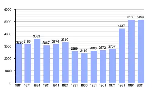 | Gráfica de evolución demográfica de San Benigno Canavese entre 1861 y 2001 |