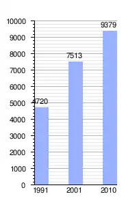 Gráfica de evolución demográfica de San Bernardo entre 1991 y 2010