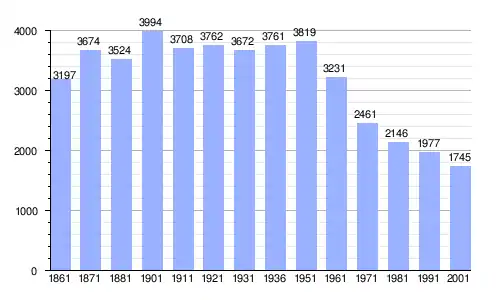 | Gráfica de evolución demográfica de San Casciano dei Bagni entre 1861 y 2001 |