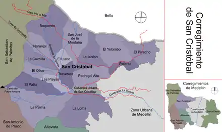 San Cristóbal es uno de los 5 corregimientos (divisiones de la zona rural) del municipio de Medellín. El Corregimiento limita por el norte con el municipio de Bello, por el oriente con el perímetro urbano de Medellín, por el sur con los corregimientos de Altavista y San Antonio de Prado y por el occidente con el corregimiento de Palmitas. La cabecera del corregimiento se encuentra a 11 kilómetros del centro de la ciudad de Medellín.
