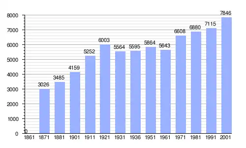 | Gráfica de evolución demográfica de San Giorgio delle Pertiche entre 1861 y 2001 |